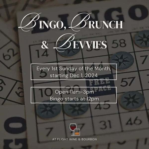 Mark your calendars for the first Sunday of every month for Bingo at Flight! We will be open from 11am-3pm, with Bingo starting at 12pm.