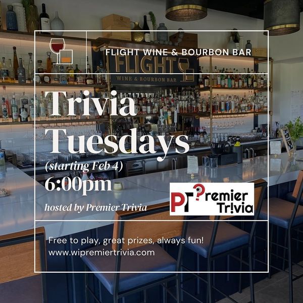 Join us for Trivia Tuesdays at Flight Wine & Bourbon Bar - the only place where your answers can be a little 𝘸𝘩𝘪𝘴𝘬𝘦𝘺!
